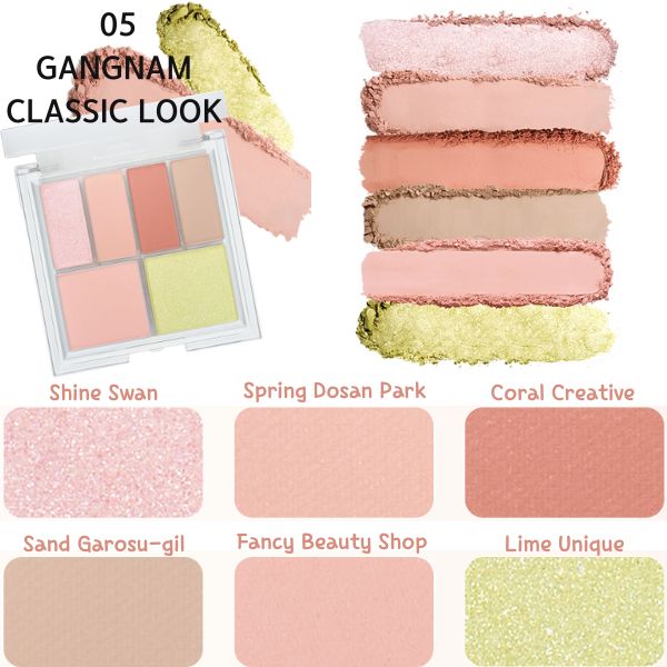 Create effortlessly stunning everyday looks with this versatile 6-shade eye palette. Each curated pan features a blend of matte, shimmer, glitter, and balm-type textures, allowing you to mix and match finishes for any mood or occasion.