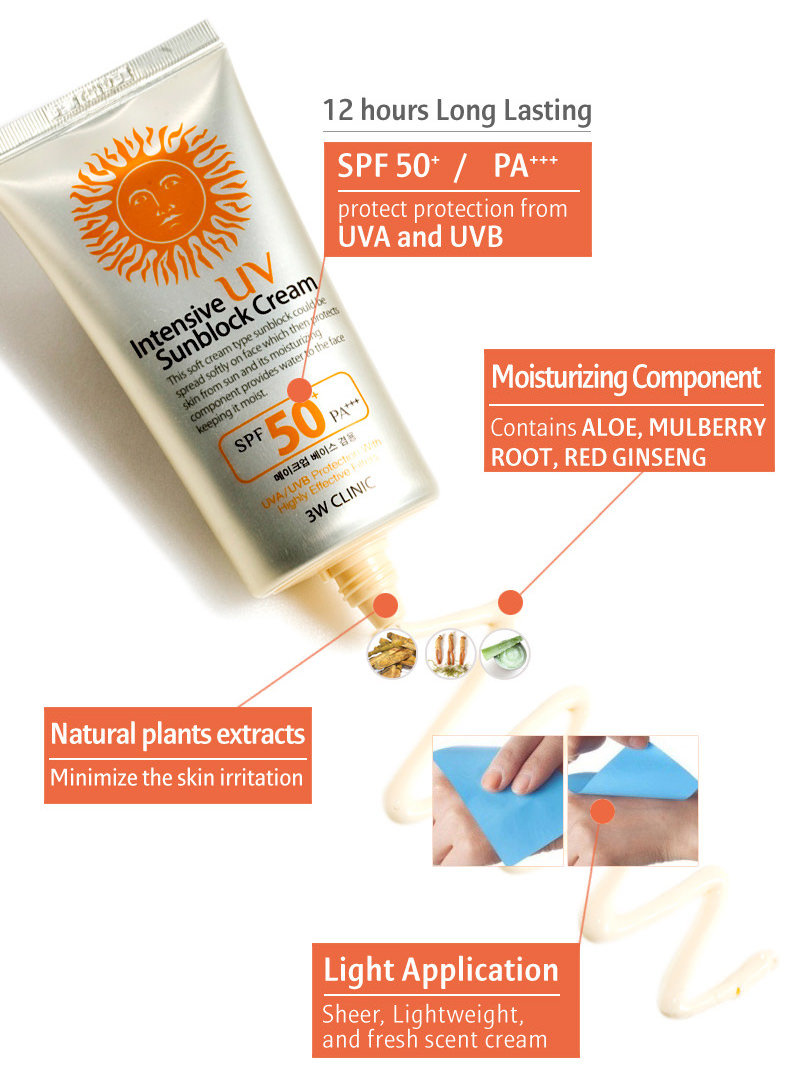 3W CLINIC - Intensive UV Sun Block Cream SPF50+ PA+++