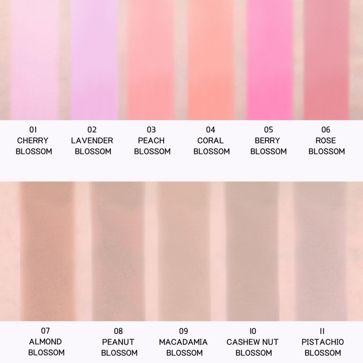 - No.01 Cherry Blossom: is a milky pink color.
