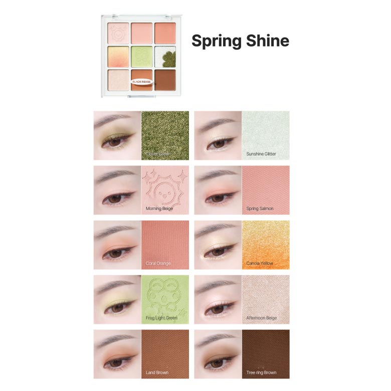 A 9-pan eye shadow palette with 2 refreshing shades for creating unique charming eye makeup looks.