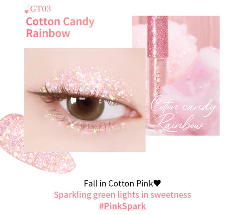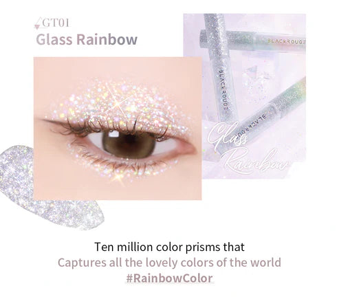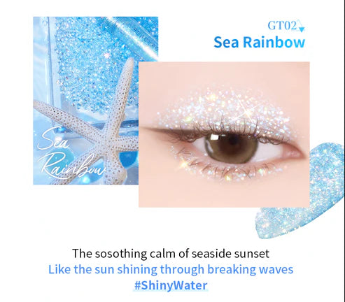 - A liquid eyeshadow packed with triangle-shaped glitters that sparkle like rainbow at all angles.