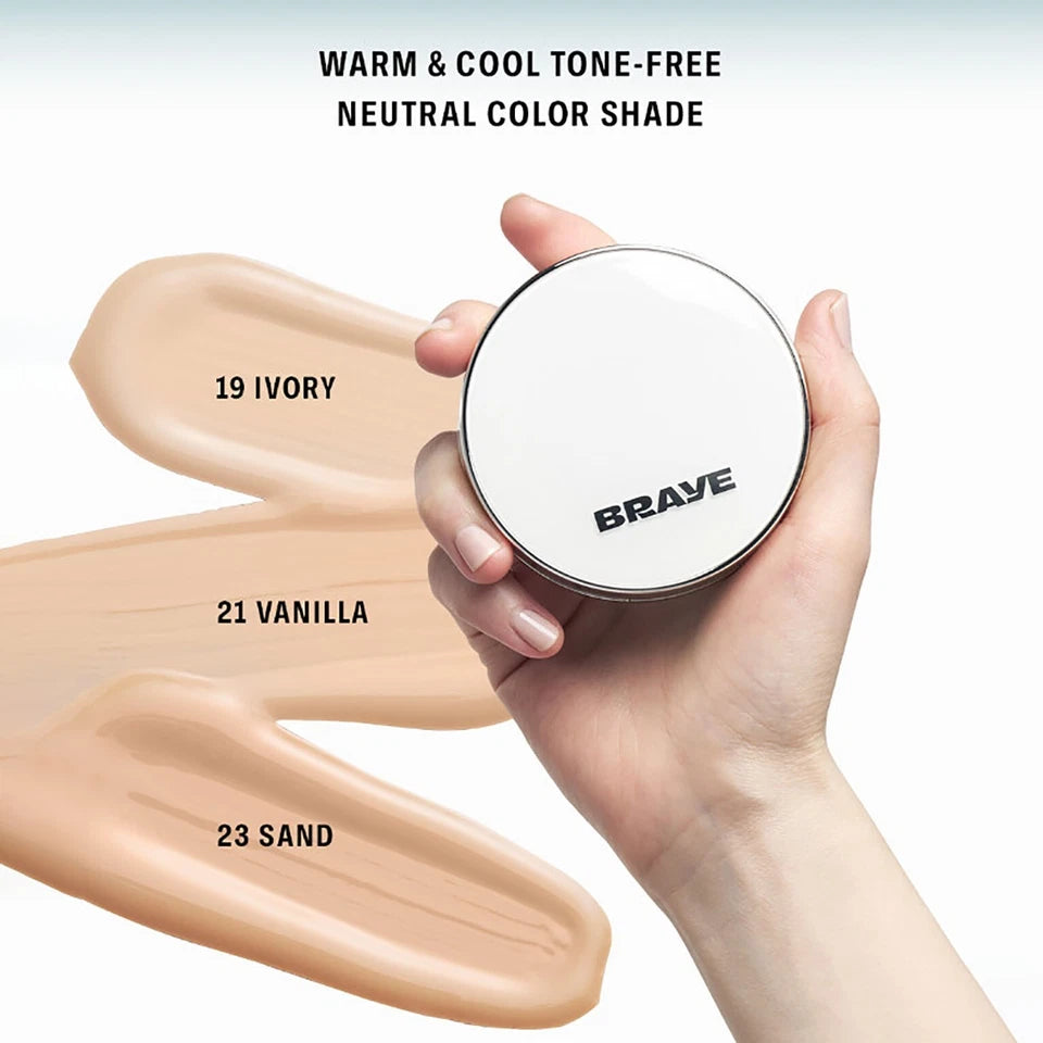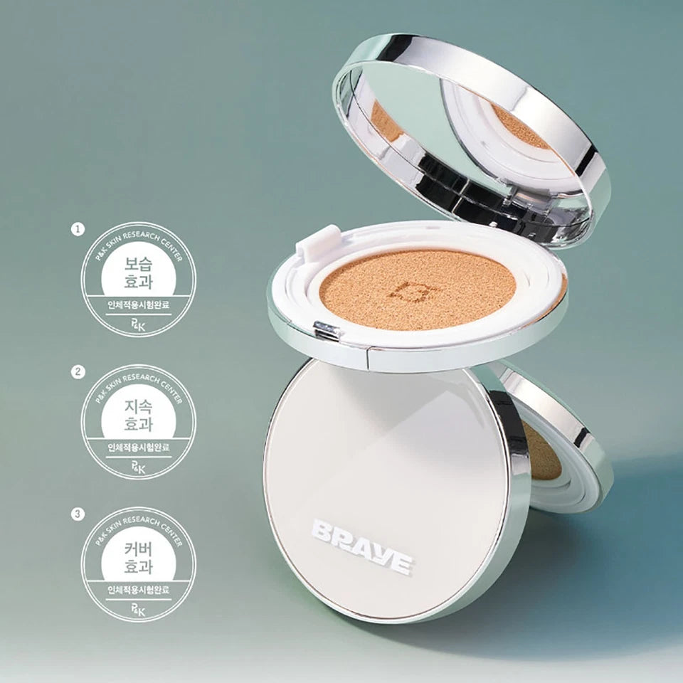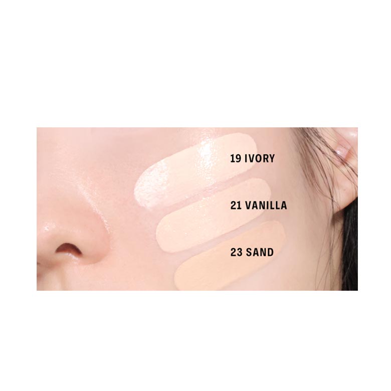 A cushion foundation offers proper coverage in a thin texture with a broad spectrum of SPF 50+ PA+++ for sun protection.