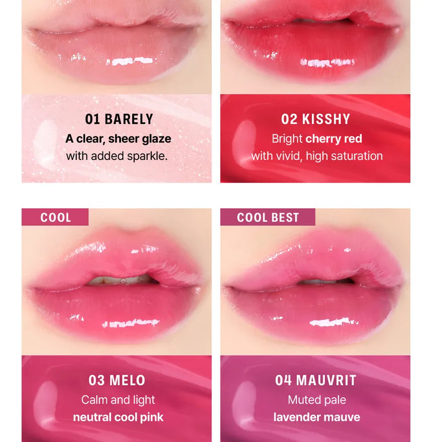 #01 Barely: A clear, sheer glaze with added sparkle and comes with a double plumping effect