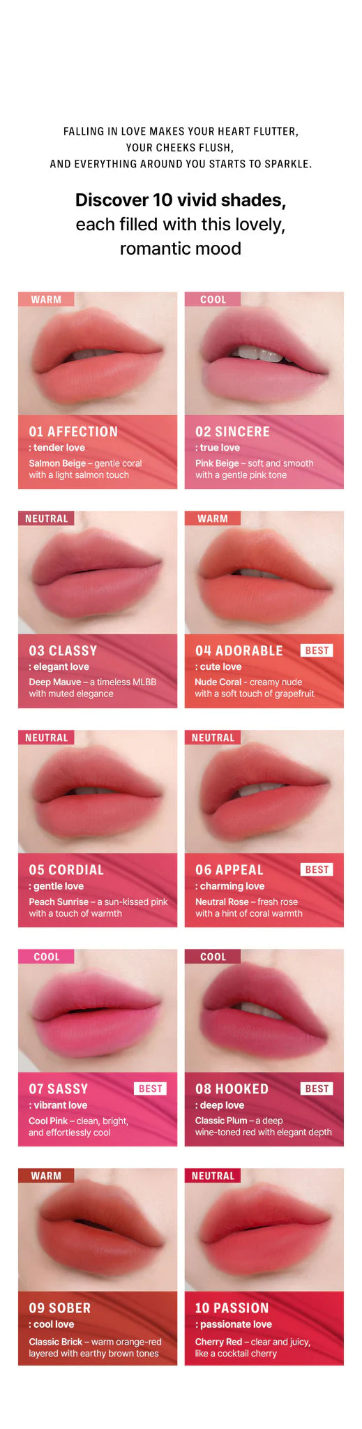 A soft blurry lip tint comes with 10 stunning shades to create vibrant lip makeup looks.