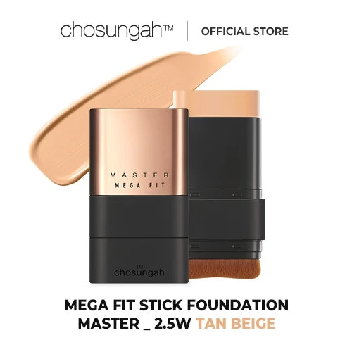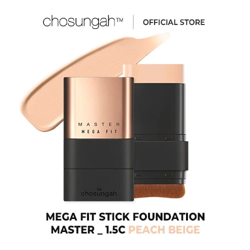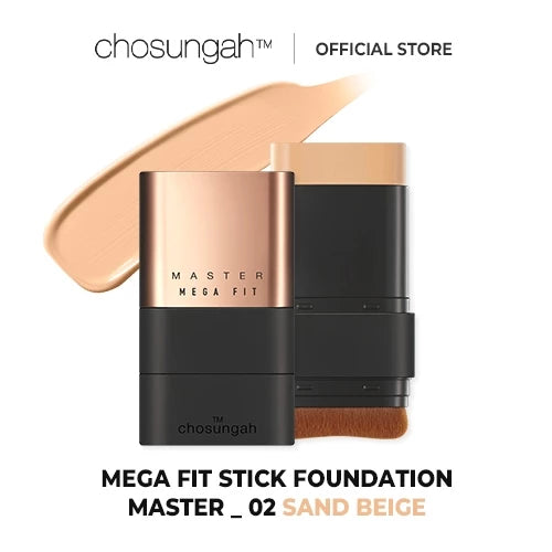CHOSUNGAH TM – Mega Fit Stick Foundation Master is a high-performance stick foundation designed to deliver seamless, full-looking coverage with a natural, refined finish. Its creamy, smooth-gliding texture blends effortlessly into the skin, helping to conceal blemishes, redness, and uneven tone without feeling heavy or cakey. The formula adheres well to the skin for long-lasting wear, keeping the complexion fresh and polished throughout the day. The convenient stick format allows for precise application, easy blending, and quick touch-ups, making it ideal for both everyday use and professional makeup looks.