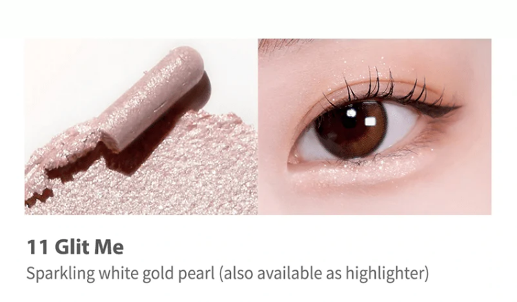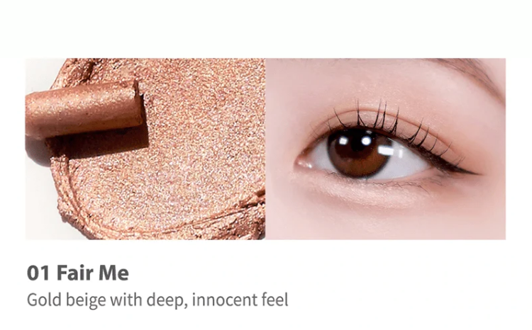 Get the aegyo-sal look with a simple swipe of this cream eye shadow under the lower lids! The waterproof and sweatproof formula in five uber-sparkly shades ensures long-lasting glam, while the twist tube construction makes application a breeze. Available in five colors ranging from beige to rose pink.