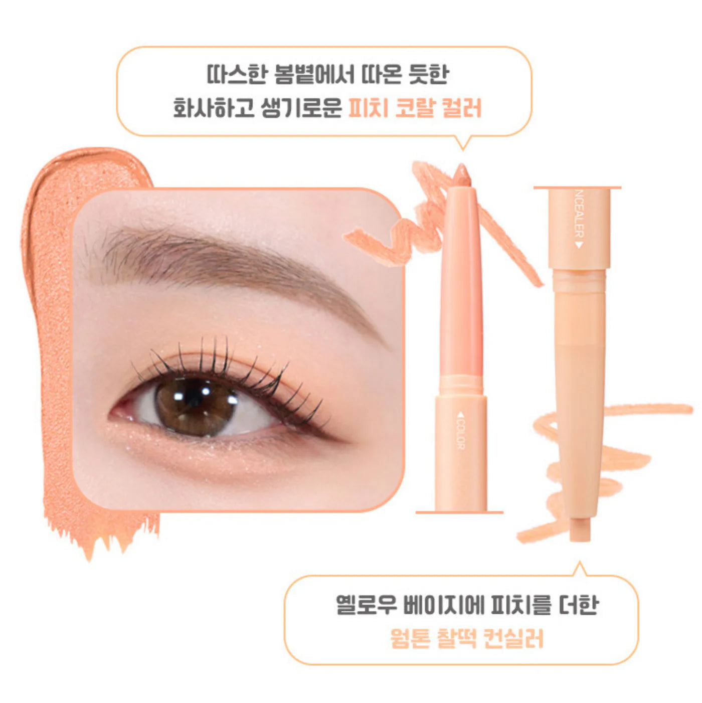 Create the perfect aegyo sal look effortlessly with this dual-ended contour stick! Use the pointed shimmery side to highlight your under-eye area, and then add subtle shading with the flat matte side to make your eyes appear larger. Coming in a beginner-friendly retractable design, the contour stick is fitted with a fine tip on both ends for easy control and precise application.