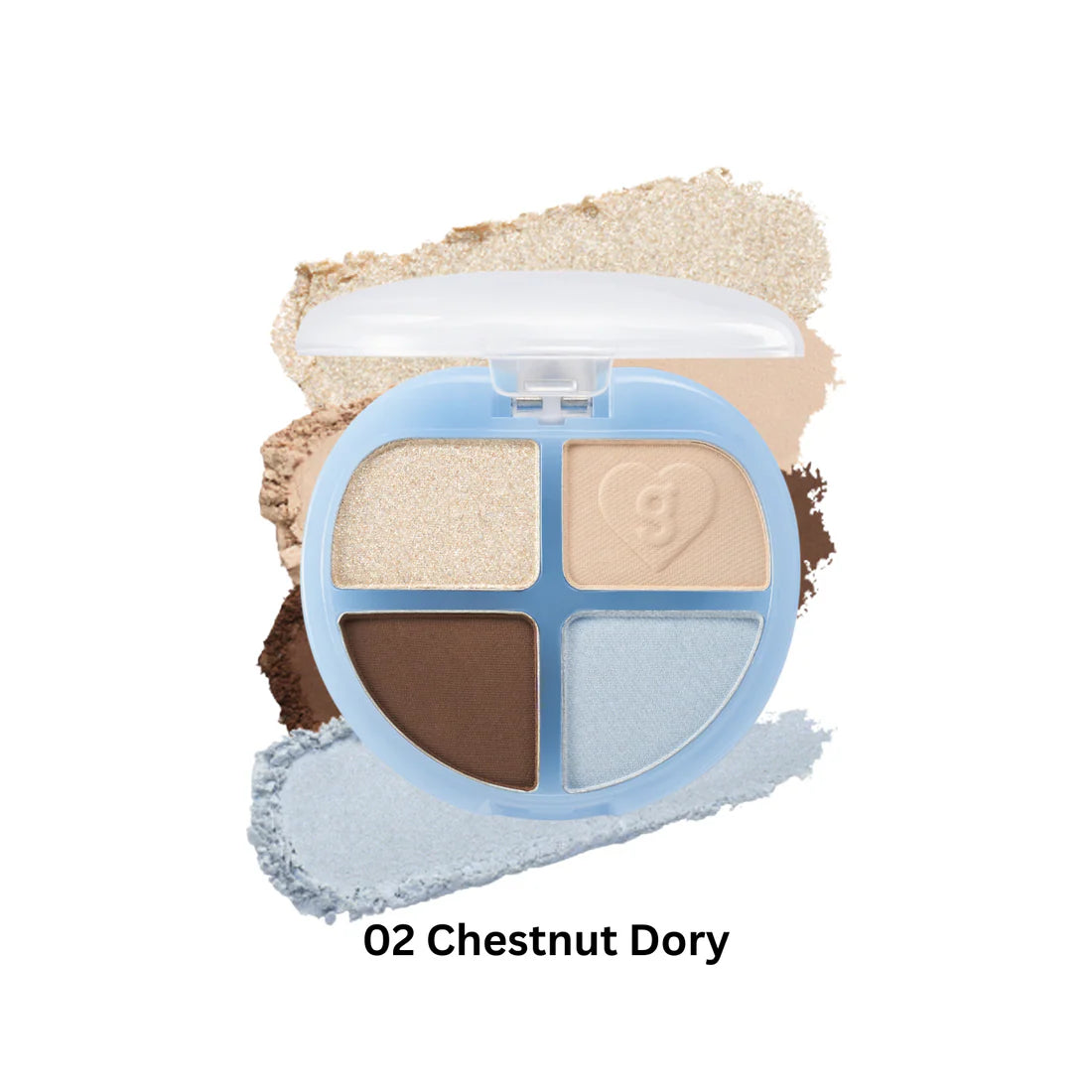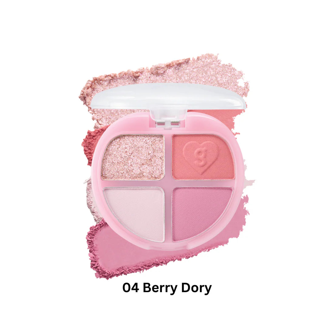 Elevate your eye makeup with this bold eyeshadow palette featuring four adaptable shades in a mix of finishes. It’s available in multiple color stories, including #02 Chestnut Dory with warm earthy hues, #03 Grapefruit Dory in soft peach tones, and Berry Dory showcasing cool pink shades. For extra sparkle, the #01 Glitter Dory option offers an all-glitter selection.