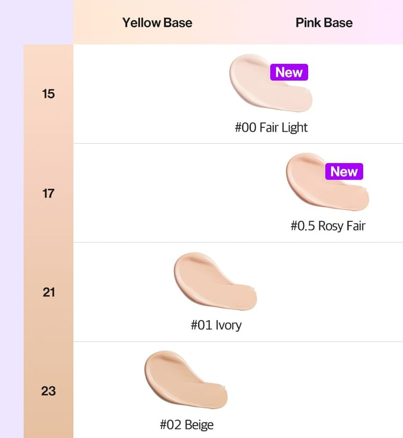 - 01 Ivory: Half toned high, light ivory color that creates bright and lively skin
