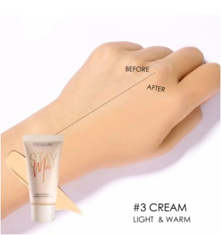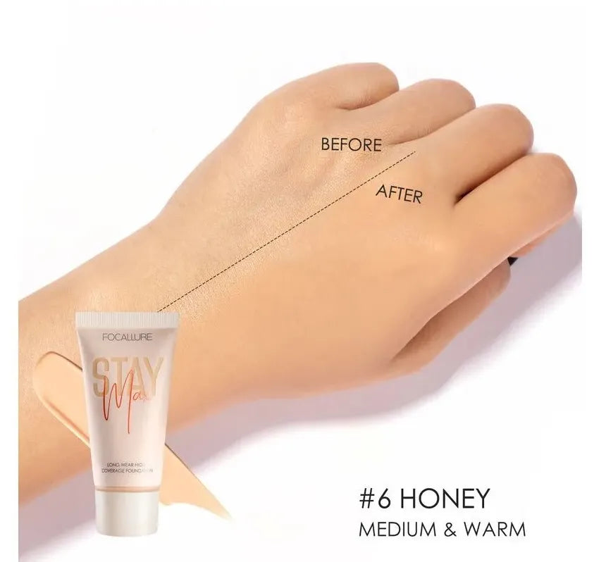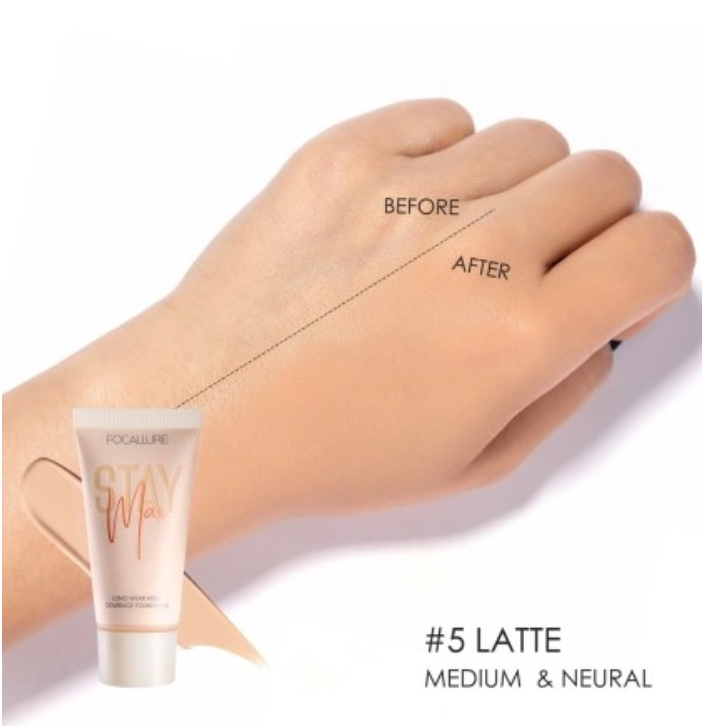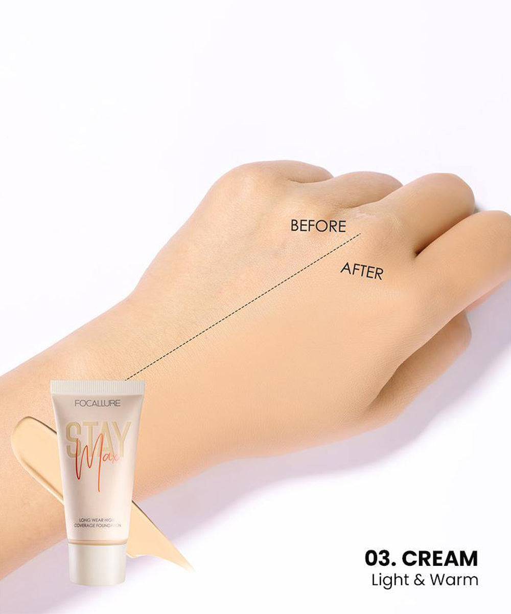 After basic priming, apply the Focallure STAYMAX Foundation with a brush, sponge, or your fingertips. Blend it out until you get the ideal coverage. Achieve a flawless complexion with Focallure STAYMAX Foundation.