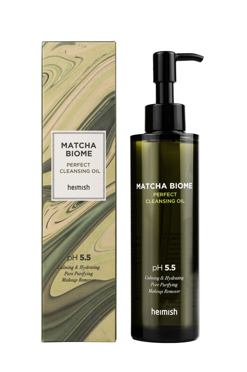 A pH balanced cleansing oil that lifts away stubborn makeup, sunscreen and other oily impurities leaving skin refreshed and hydrated without any residue. Heimish Matcha Biome Perfect Cleansing Oil is made for all skin types.