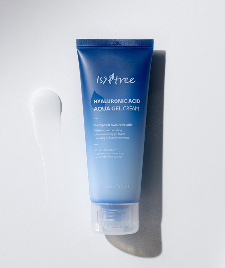 The ISNTREE Hyaluronic Acid Aqua Gel Cream is a lightweight cream that features 5 types of hyaluronic acid for a refreshing, long-lasting hydration. The hydrating formula improves skin elasticity, replenishes moisture, and leaves a refreshing sensation. Calming and anti-inflammatory ingredients such as Centella Asiatica, green tea and liquorice root extract reduce redness and create a cooling and calming feel. It's a must for dehydrated yet oily skin.