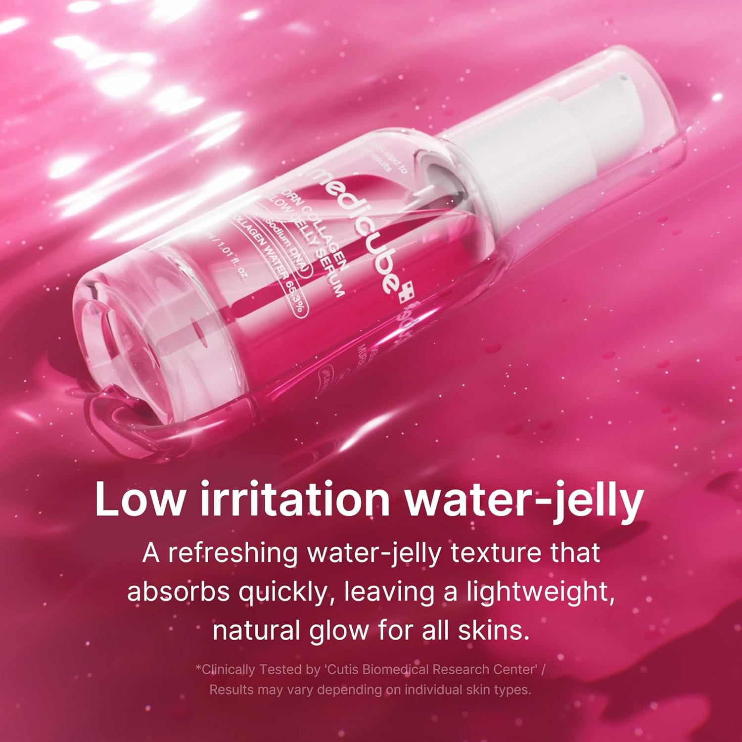 Perfect for your dewy makeup base or standalone glow, medicube's Pink Collagen Glow Jelly Serum Bouncy enriched with salmon PDRN, niacinamide and collagen promotes radiant and bouncy skin. The refreshing, jelly-like texture fills your skin with hydration without leaving a sticky residue.