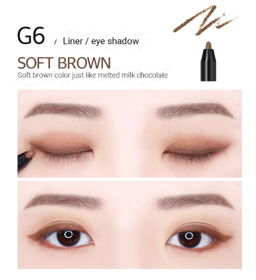 Multifunctional soft gel formula glides over lids effortlessly and can be used as eyeliner or eye shadow. Resistant against smudge, oil and water, it stays on all day. Comes with an inbuilt sharpener.