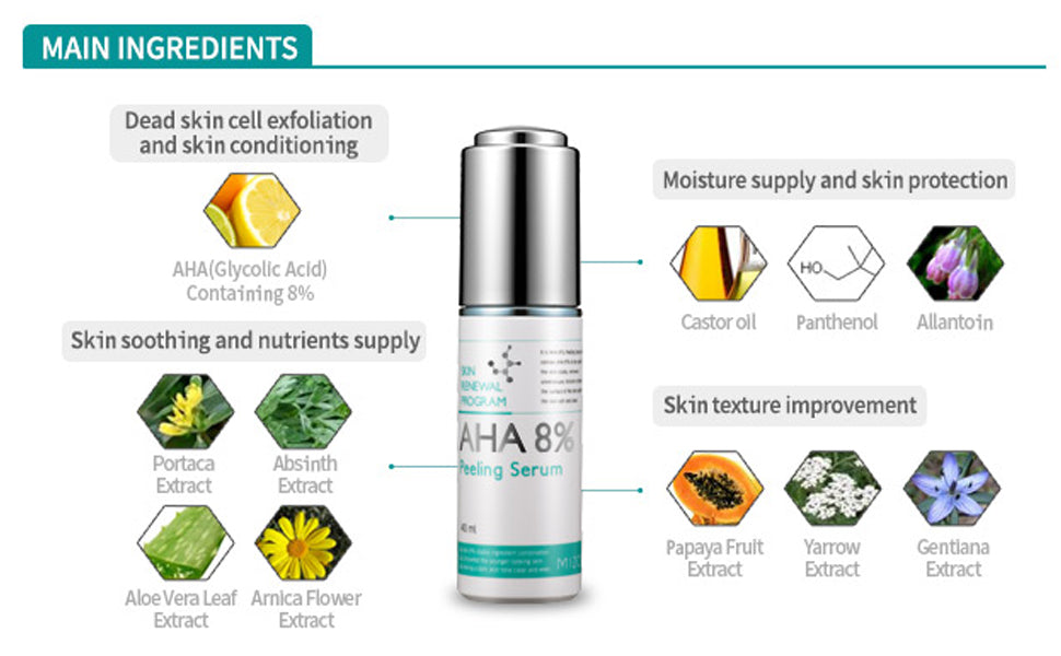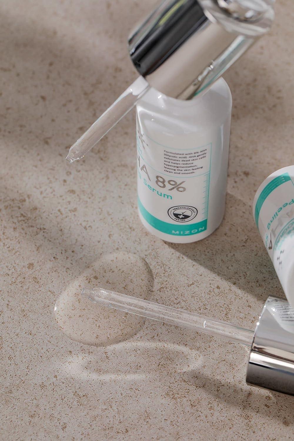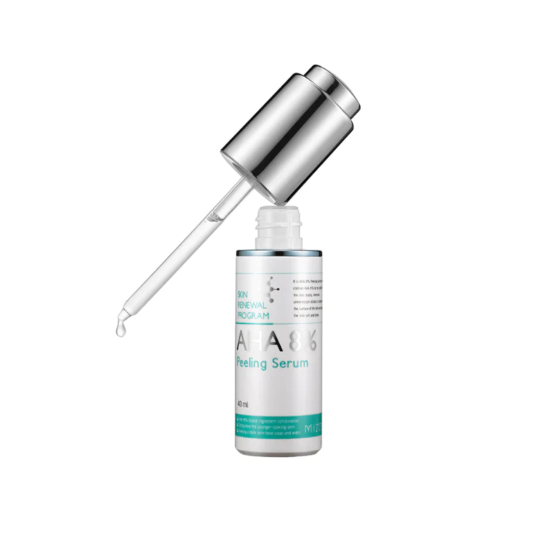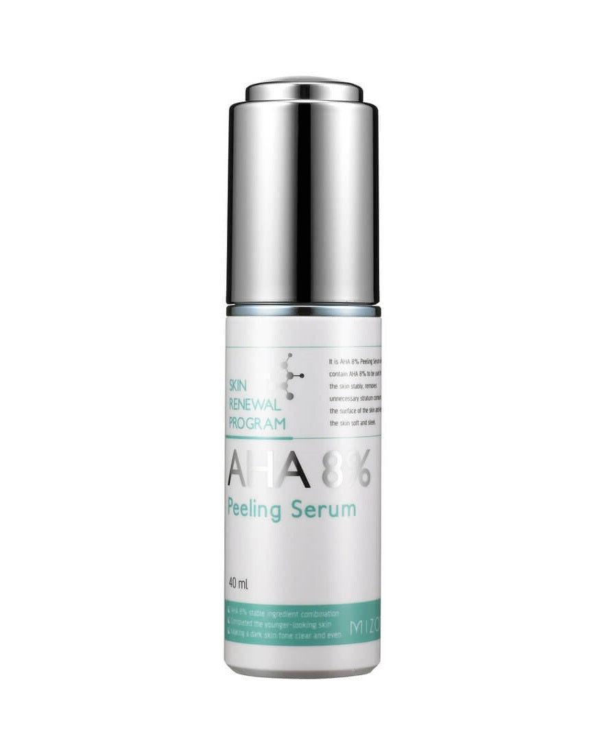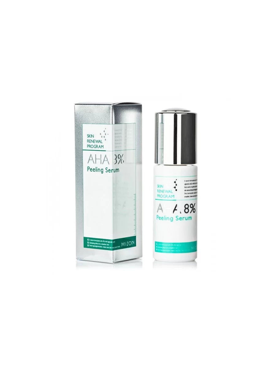 - MIZON AHA 8% Peeling Serum is a daily peeling essence that effectively exfoliates with 8% AHA for a smooth baby-like skin.