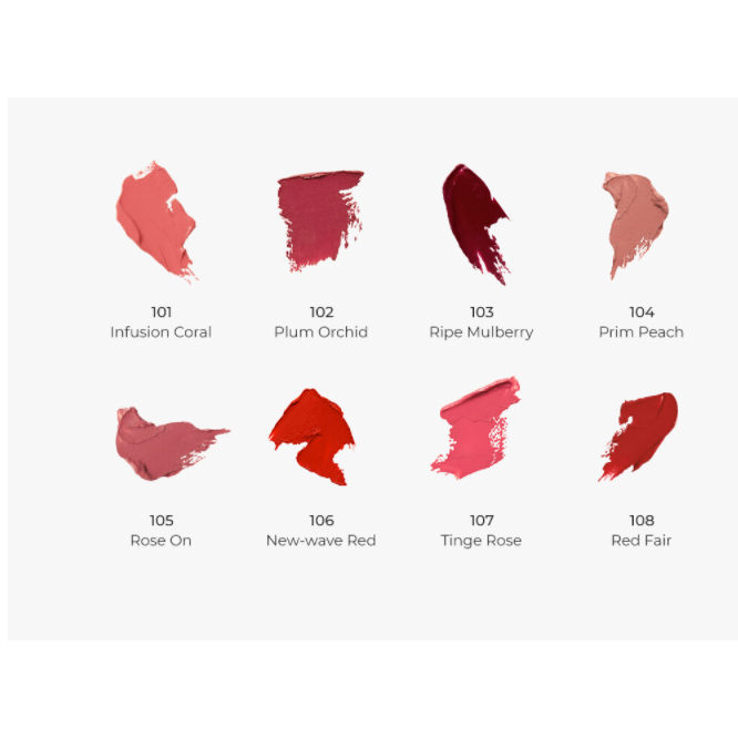 Express in rich colors with MOS's own Air-Matte texture that melts into the lips and offers softly buildable colors.