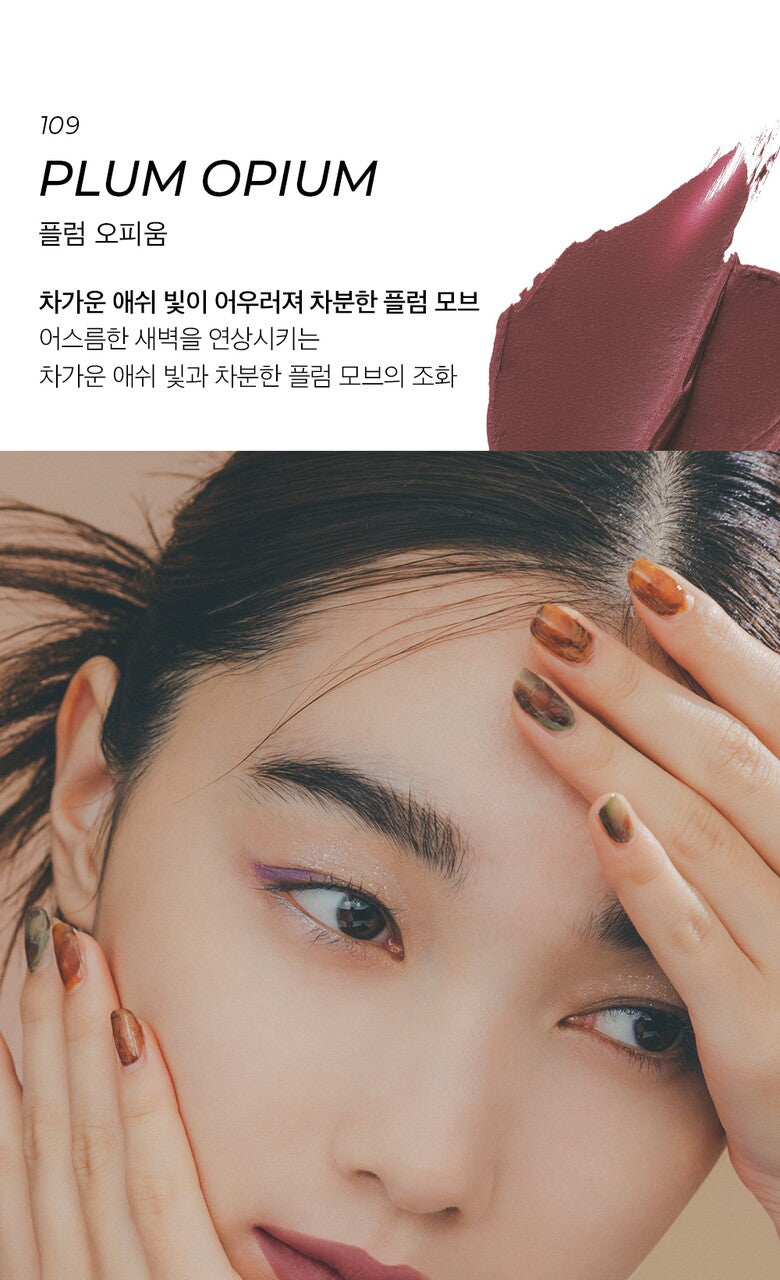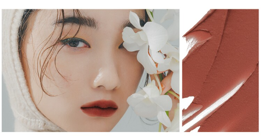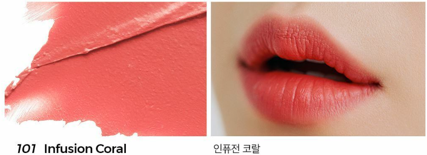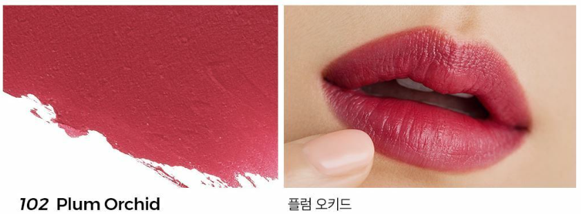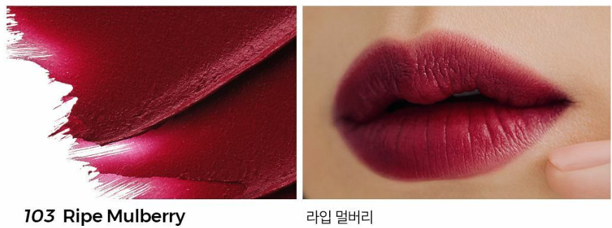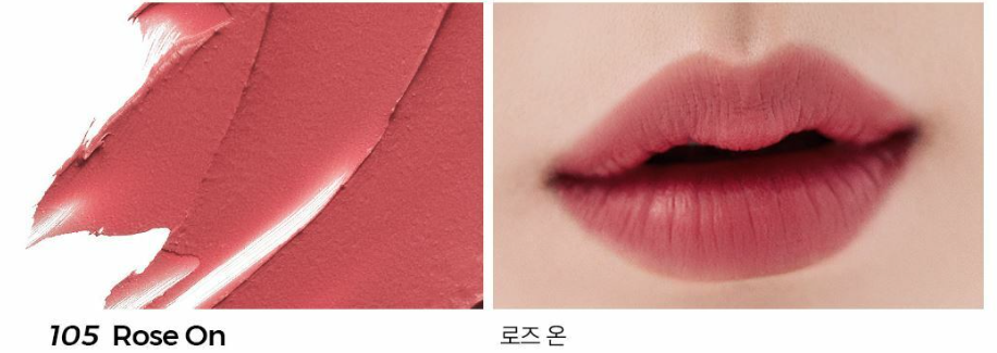 The transparent, light matte texture melts gently into the lips with long-lasting moisturization with a rich color.