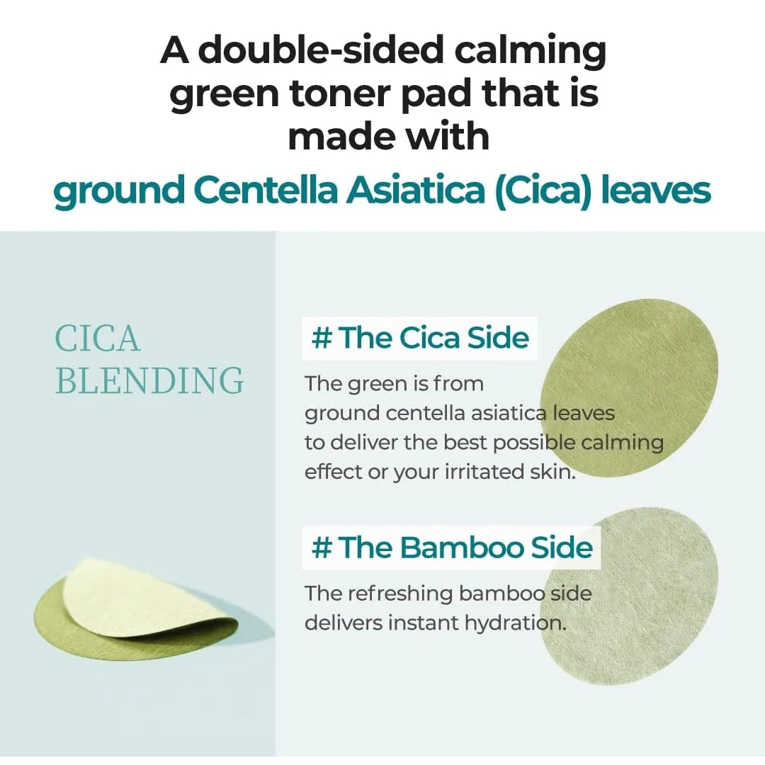 After cleansing, gently wipe the skin with the white bamboo side of the pad and use the green cica side as a mask pack. Separate the pads for multi-use.