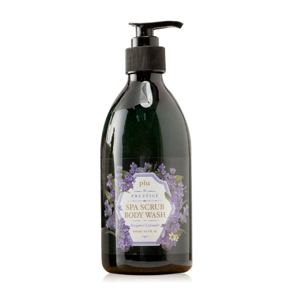 Plu Prestige Spa Scrub Body Wash Bergamot Lavender 500g Spa scrub wash made from premium ingredients and scents carefully selected from all over the world. Helps clean dirt Gently exfoliate old skin cells. Keep the skin moisturized, not dry and tight after use. Ready to make your skin radiant and strong.