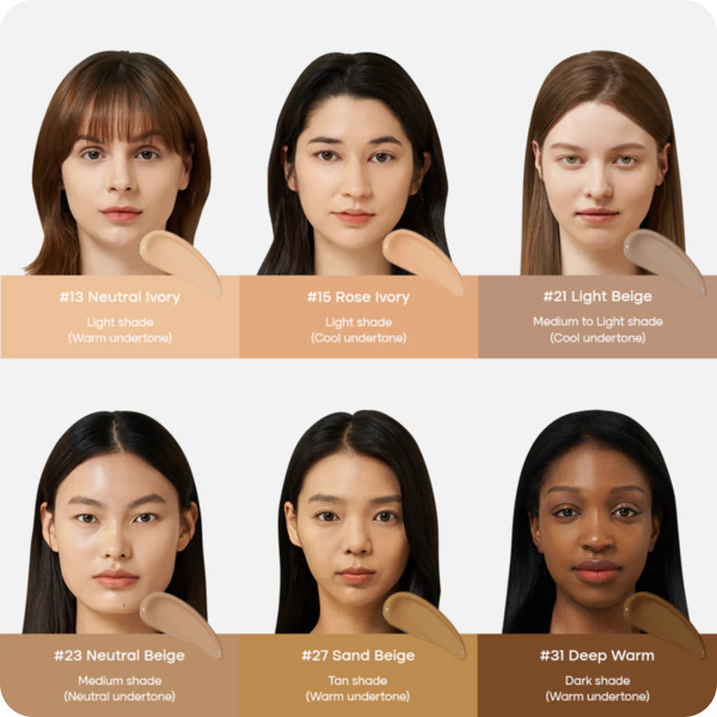 Water, Titanium Dioxide (CI 77891), Ethylhexyl Methoxycinnamate ,Cyclopentasiloxane ,Butylene Glycol ,Ethylhexyl Salicylate ,Cyclohexasiloxane ,Lauryl Polyglyceryl-3 Polydimethylsiloxyethyl Dimethicone ,Mica ,Hydrogenated C6-14 Olefin Polymers ,Niacinamide ,Zinc Oxide ,Sodium Chloride,Iron Oxides (CI 77492) ,Disteardimonium Hectorite ,Sorbitan Sesquioleate ,Zinc Stearate ,Dextrin Palmitate ,Triethoxycaprylylsilane ,Aluminum Hydroxide ,Iron Oxides (CI 77491) ,Caprylyl Glycol ,Panthenol ,Allantoin ,Centella Asiatica Extract ,Dimethicone/Vinyl Dimethicone Crosspolymer ,Iron Oxides (CI 77499) ,Caprylhydroxamic Acid,Glycerin ,Adenosine ,1,2-Hexanediol ,Tocopherol ,Madecassoside ,Asiaticoside,Asiatic Acid ,Madecassic Acid