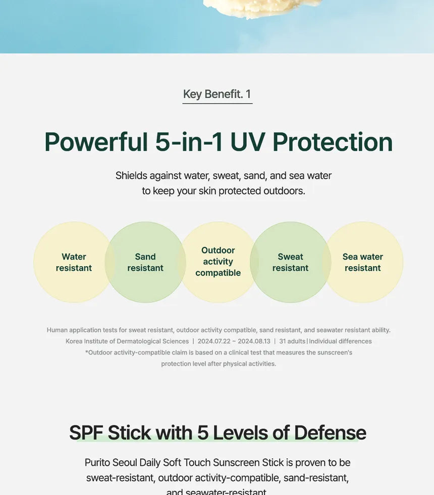 - A non-greasy pocket-sized sun stick offering SPF50+ PA++++ UV protection with a powerful shield against water, sweat, sand, and seawater to protect the skin outdoors.