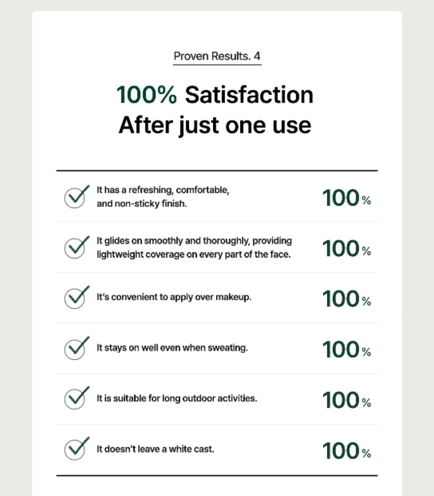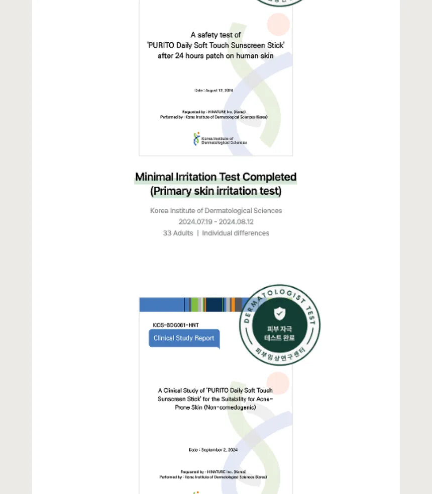 - SPF/PA UV tested, five levels of defense tested, primary skin irritation test, acne-prone skin suitability test completed, hypoallergenic test completed for the sensitive skin.