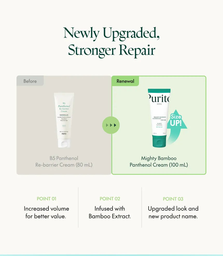 - This cream consists of Panthenol and Korean Bamboo-infused cream to repair the damaged skin barrier, granting the skin a radiant glow with the advanced repair and hydration seal.