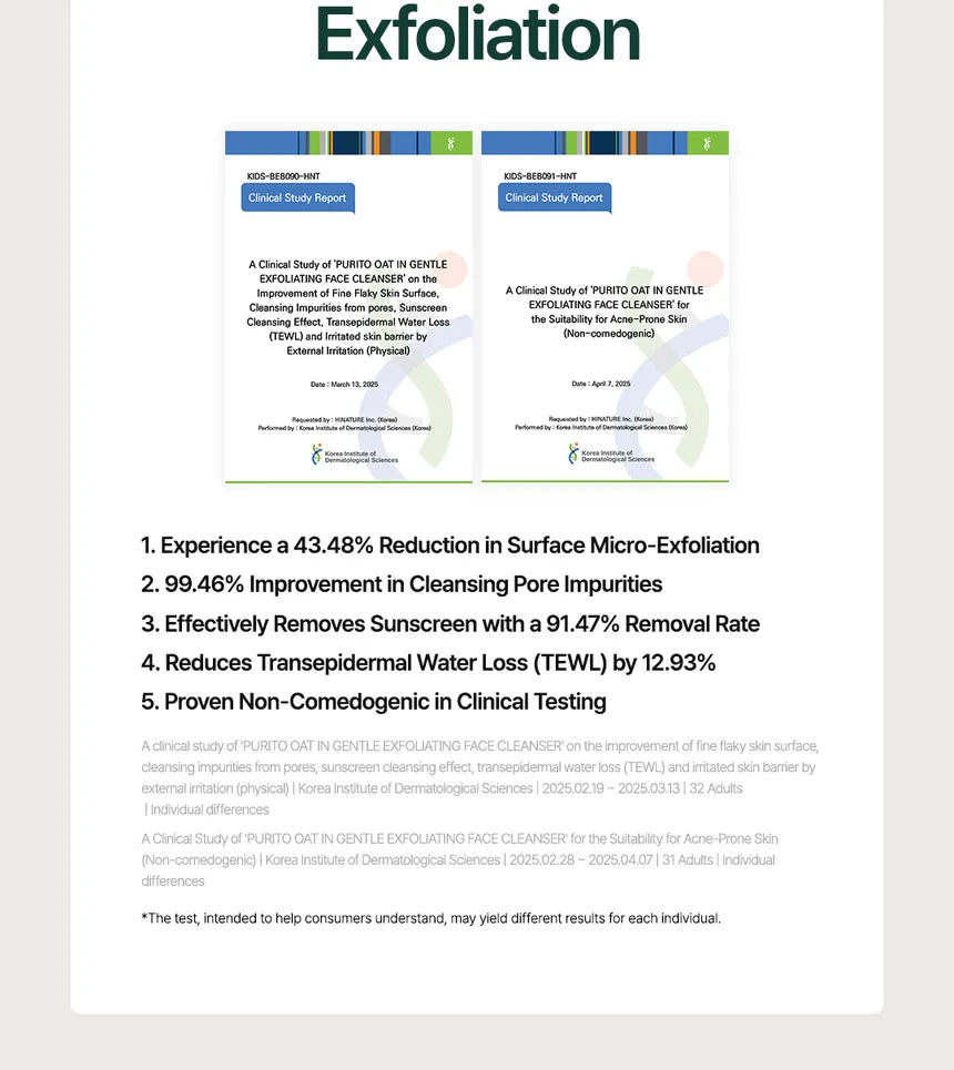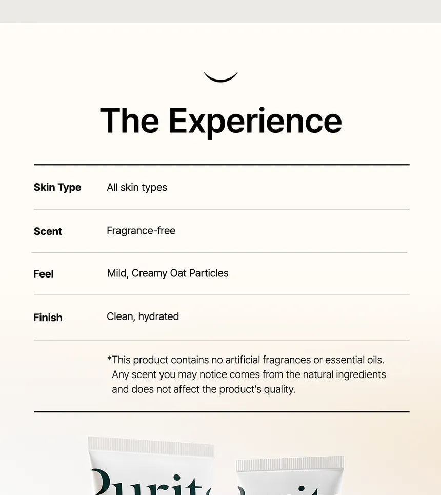 - A exfoliating cleanser with fine Korean Oat Particles and Oat Seed Water gently and thoroughly exfoliates and clears pores without irritation.