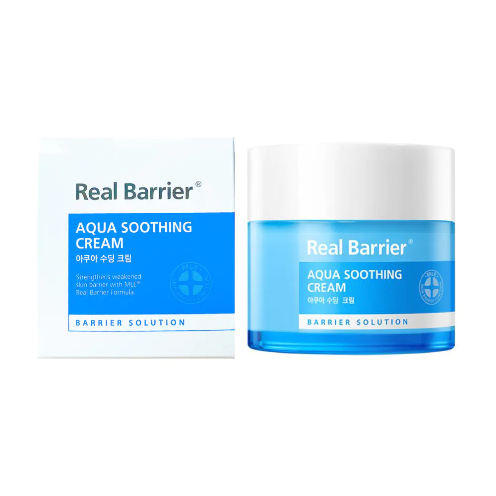 REAL BARRIER AQUA SOOTHING GEL CREAM, a light weight, quickly absorbed, cooling cream-gel formula containing 5 different forms of Hyaluronic Acids (Hyaluronic Acid, Hydrolyzed Glucosaminoglycans, Sodium Hyaluronate Crosspolymer, Sodium Hyaluronate and Hydrolyzed Hyaluronic Acid). These 5 ingredients are included in the formula at varying amounts, and each has its’ own function, all of which aid in the delivery of moisture to the various layers of the skin.