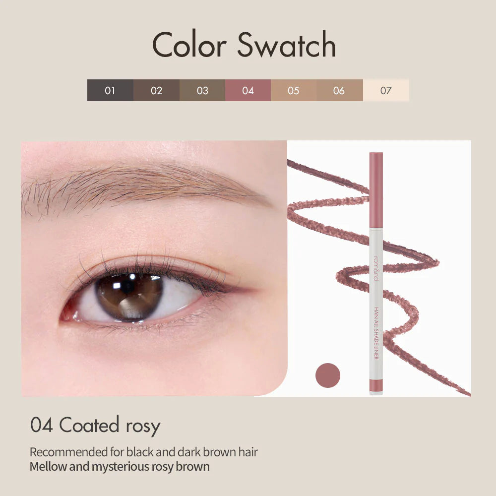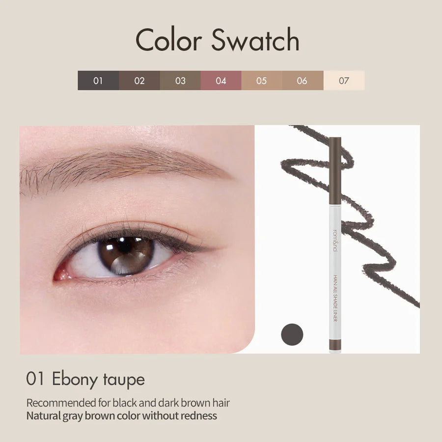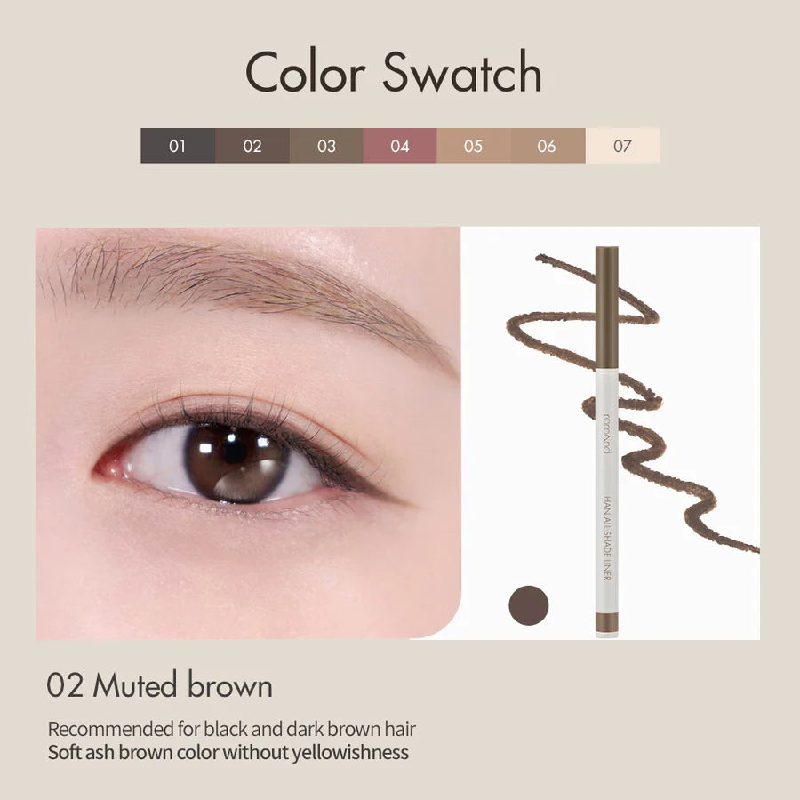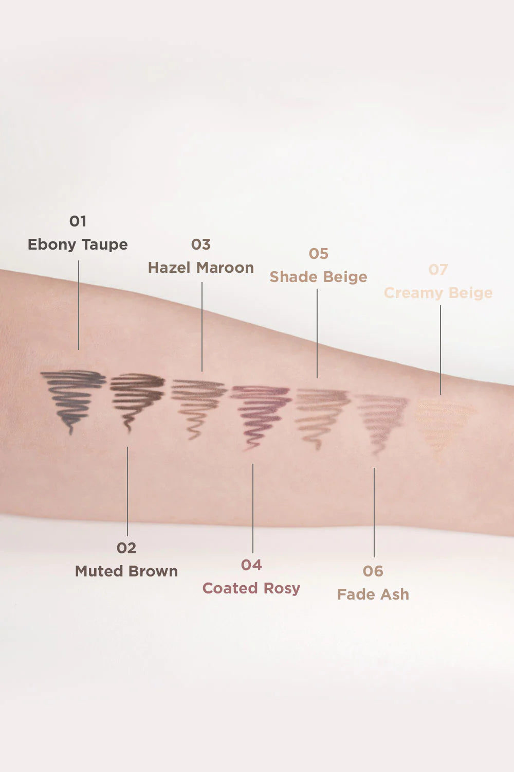 Enhance your eye makeup with this eyeliner featuring natural shadow colours. Each liner blends well with the skin, and the 1.5mm slim tip allows neat and precise drawing. The long-lasting formula adheres well to the skin without smudging or clumping. Available in 7 different colours.