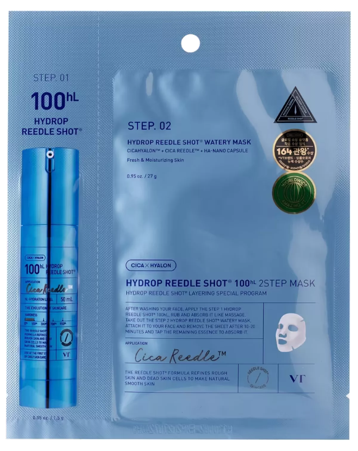 This 2-step mask with Hydrop Reedle Shot formula fills skin with moisture from the inside.